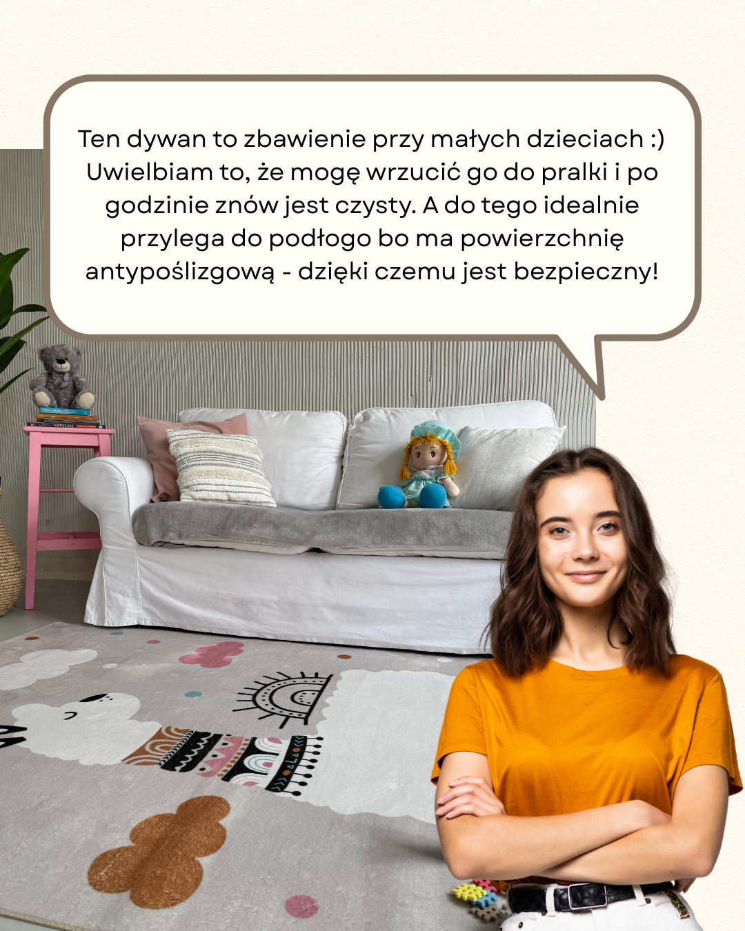 Nasze dywany tworzą bezpieczną, miękką przestrzeń także dla czworonożnych członków rodziny. Delikatne materiały, brak szkodliwych substancji i łatwość czyszczenia sprawiają, że to idealne miejsce do wspólnego odpoczynku, zabawy i przytulania.