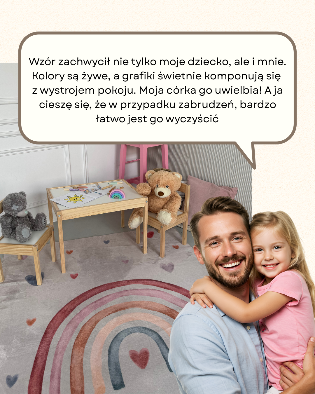 Zaprojektowane z myślą o codzienności z dzieckiem – nasze dywany łatwo utrzymać w czystości, by zawsze były gotowe na kolejną porcję zabawy.